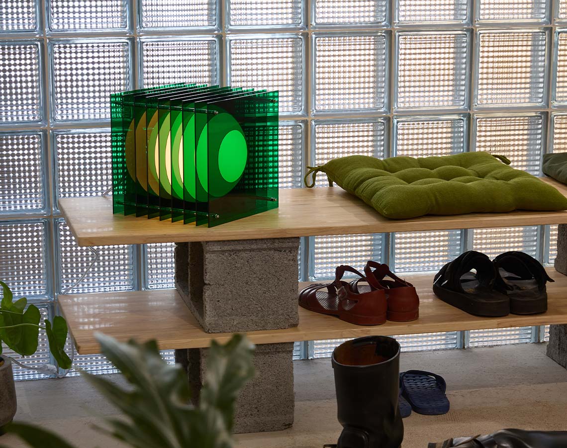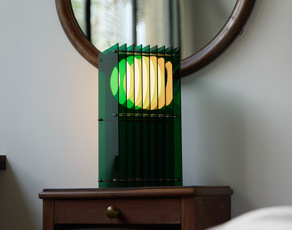 Lop ist mehr als eine Leuchte – es ist ein poetisches Spiel aus Licht, Reflexion und Form. Im Zentrum steht eine scheinbar schwebende Kugel, eingebettet in mehrere transparente Acrylschichten. Sobald das Licht eingeschaltet wird, entstehen auf diesen Ebenen faszinierende Spiegelungen der Kugel, die wie Nachbilder wirken und eine sanfte Illusion von Bewegung erzeugen – obwohl die Kugel selbst stillsteht. Der Name „Lop“ stammt aus dem Vietnamesischen und bedeutet „Schichten“.