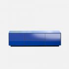 Mit einer flachen, horizontalen Form, die durch klare Linien und eine symmetrische Anordnung der Fronten überzeugt. Diese bieten praktische Schubladen und Fächer für großzügigen Stauraum und machen das Möbelstück zu einer idealen Lösung für Wohn- oder Multimedia-Bereiche.